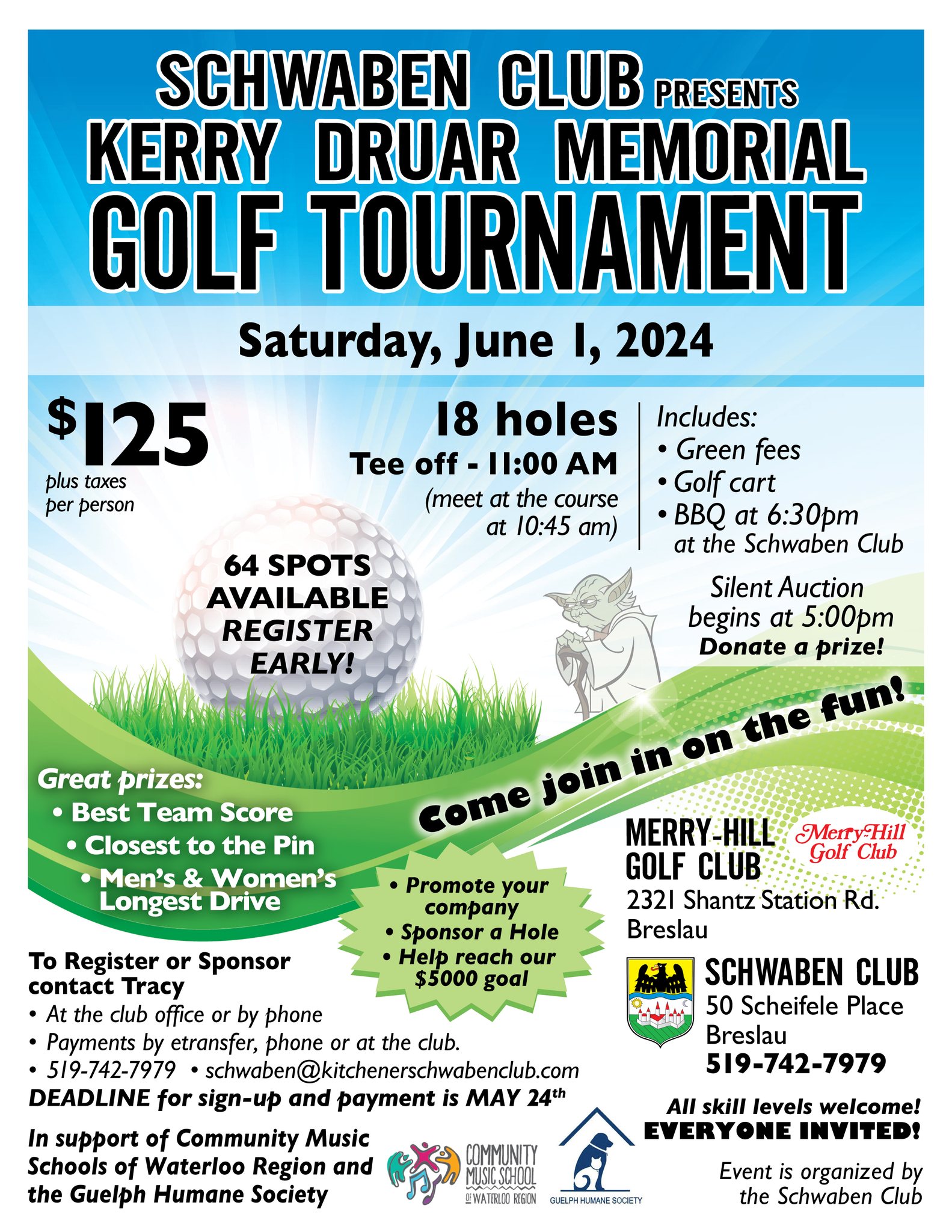 On June 1, 2024 the Kitchener Schwaben Club will be hosting the Kerry Druar Memorial Golf Tournament at
